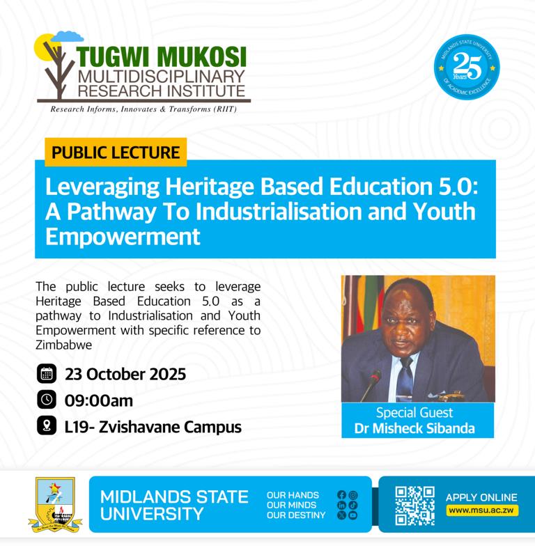 The public lecture seeks to leverage Heritage Based Education 5.0 as a pathway to Industrialisation and Youth Empowerment with specific reference to Zimbabwe.